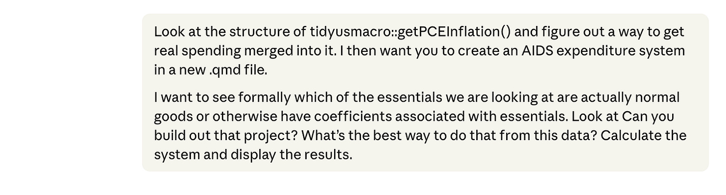 This Substack, and the way AI changes how we investigate issues here, reflects my own personal views and not my employer. As for background, I earned a bachelor’s degree in computer science and mathematics in 2001, and worked as a software and financial engineer for many years before embarking on an economics career. So I’m not new to coding, but I haven’t done it professionally in a long time. I took a class in assembly language in college, and did a lot in C++. When I first encountered Perl, I felt like I was cheating, that I was just talking at the computer. Where were the pointers? But I got over that quickly. Better tools are better. And now, with terminal tools, I literally just talk at the computer to code.