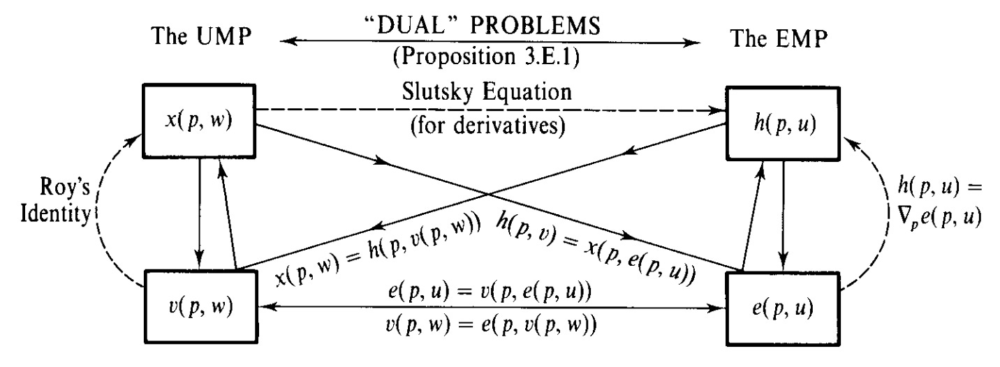 Keeping with that blog post on essentials: I do not know the complicated microeconomic derivations as well as I should. What differentiates Hicksian from Marshallian demand does not come naturally to me. It’s been almost twenty years, and I still occasionally have nightmares about that one chart from Chapter 3 of Mas-Colell.